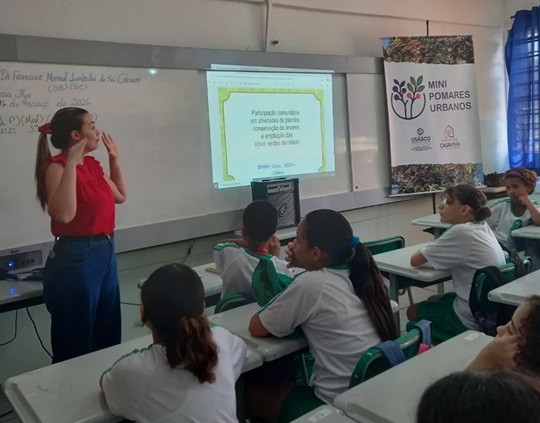 “Colher e comer frutos nativos, muitas vezes desconhecidos, estimula hábitos alimentares saudáveis. Ajuda no entendimento de onde vem o alimento e seu tempo de crescimento. Estamos muito felizes e agradecemos à escola pela adesão ao nosso projeto. Esse mini pomar vai trazer benefícios para a saúde mental porque estar em contato com árvores e observar a avifauna local melhora o foco e promove o bem-estar geral. O mini pomar servirá, principalmente, de espaço de convivência e educativo,” disse a educadora ambiental do projeto.