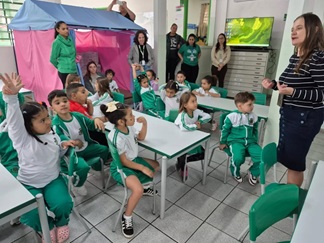 Na manhã desta terça-feira (10/3) a CEMEI Yolanda Botaro Vicente, na Vila Ayrosa, foi palco de uma ação educativa vibrante com contação de história, performance teatral e plantio de oito espécies frutíferas da Mata Atlântica.