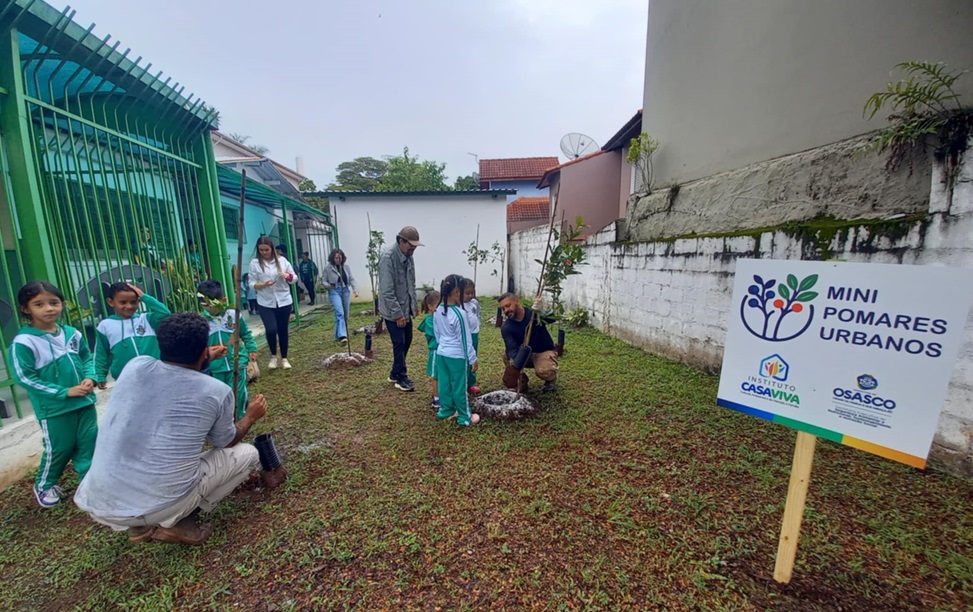 A iniciativa faz parte do Projeto Mini Pomares Urbanos, da Casaviva, e visa arborizar com espécies frutíferas áreas escolares, para aumentar a conexão dos estudantes com a natureza.