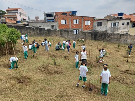 A Casaviva Instituto, em atividade conjunta com a Secretaria de Segurança Alimentar e Sustentabilidade da Prefeitura de Osasco, realizou na manhã desta segunda-feira (23/02) plantio de 50 mudas de árvores frutíferas de espécies da Mata Atlântica, na EMEF Veríssimo de Matos, no Jardim Roberto.